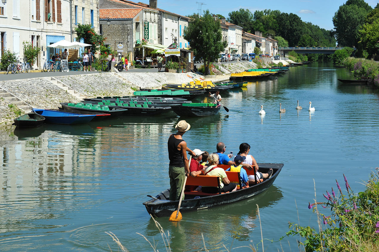 In la Caillère Saint Hillaire halen we croissants, une baguette tradition en een brioche bij de lokale bakker. In de plaatselijke Spar kopen we kazen en wijn uit de streek. Na het ontbijt ontdekken we de mooie dorpen en het historisch patrimonium in de buurt. We rijden naar Fontenay Le Comte, we bezoeken de oude binnenstad en het kasteel Terre Neuve , we rijden door naar Maillezais en bezoeken de abdij en met een bootje gaan we te water in het groene Venetië. In het restaurant Auberge de l’Abbey, rechtover de abdij, genieten wij van typische gerechten van de Marais-Poitevin. We rijden door naar Nieul sur l’Autise en bezoeken daar de gerenoveerde abdij en de oude molen.