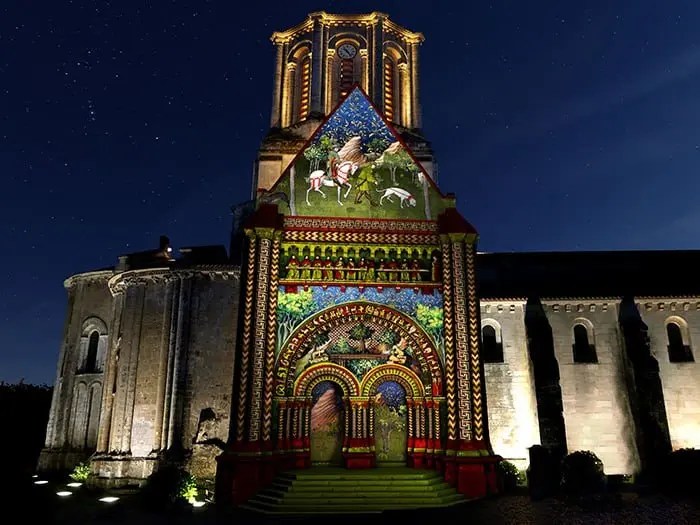 Uitpakken, opfrissen en na een wandeling in het pittoreske Vouvant lekker eten in het sympathieke Maître Pannetier. Voor we huiswaarts keren, kijken wij naar het lichtspektakel op de gevel van het Romaanse kerkje